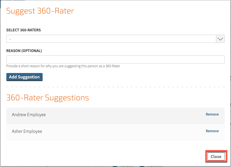 Step 4: Add additional suggestions to send to your manager as needed, select Close to exit.