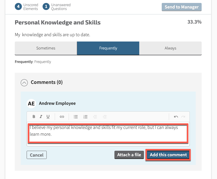 Step 3: When adding a comment, be sure to click Add this comment to add it to the appraisal document.