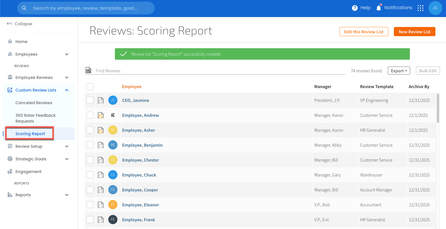 Creating a Custom List of Reviews is a valuable tool for administrators, allowing them to see the customized data that is important to them.