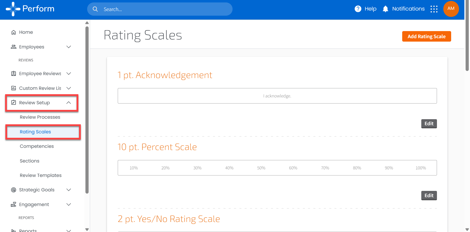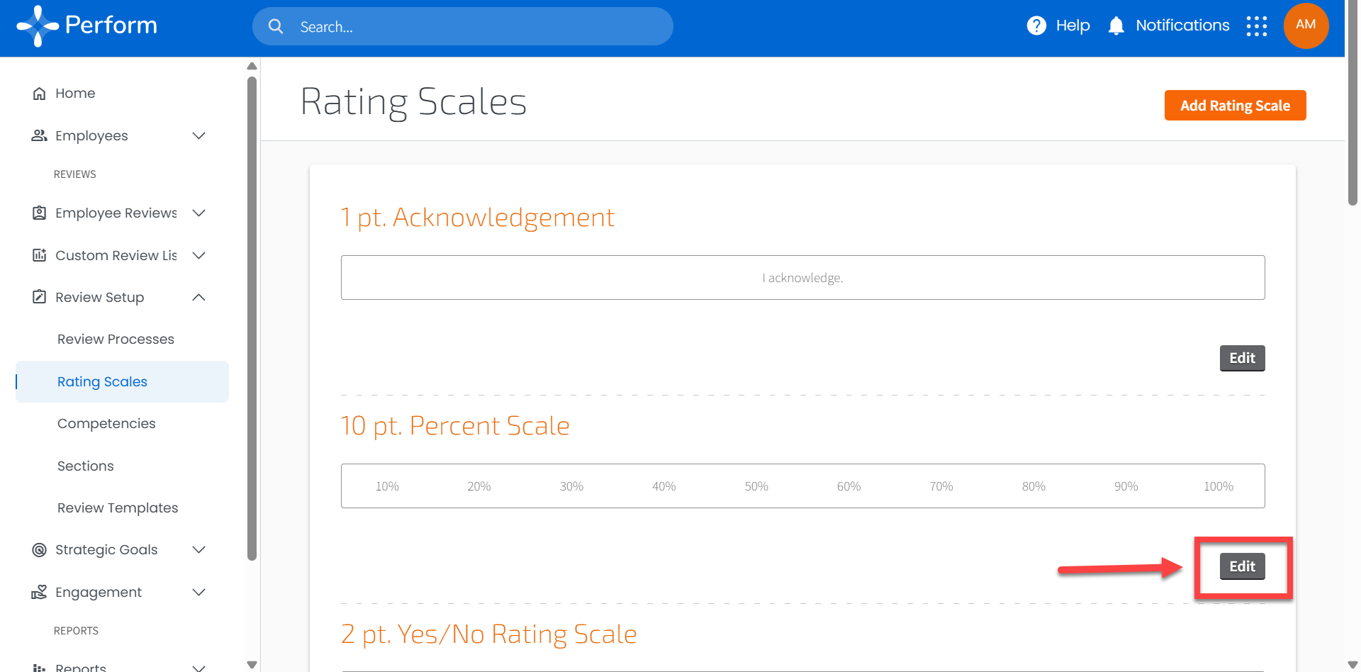 - Click Edit to make changes to the Rating Scale