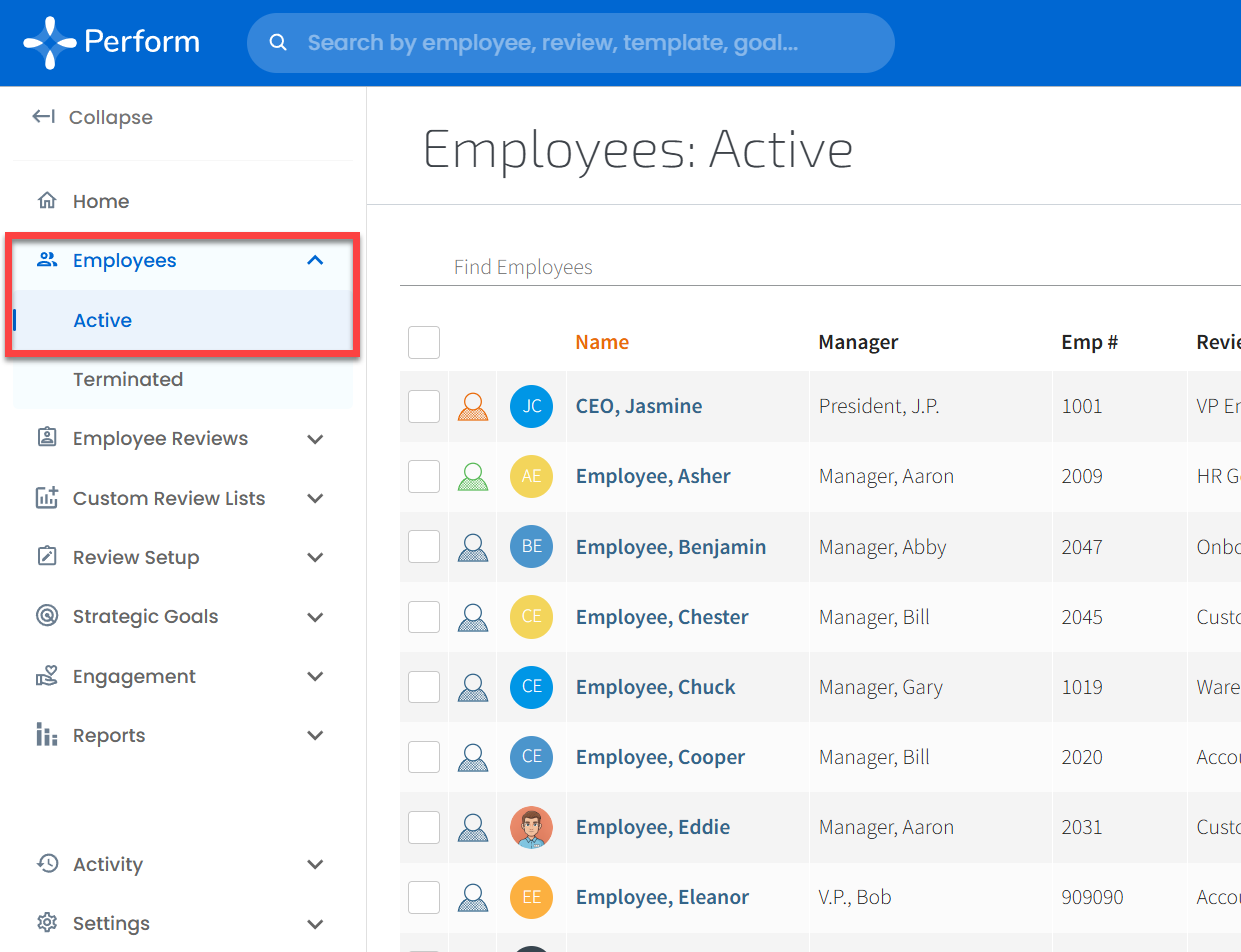 Ensure you are logged in as a site administrator, and click on the Employees tab from the left navigation bar. This will display all active employees.