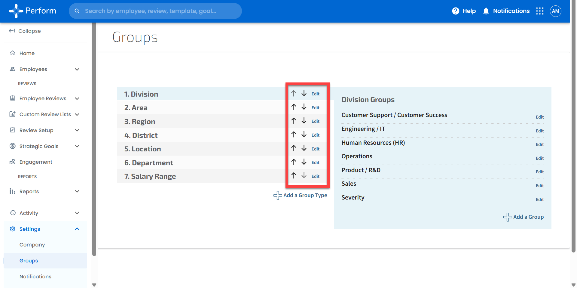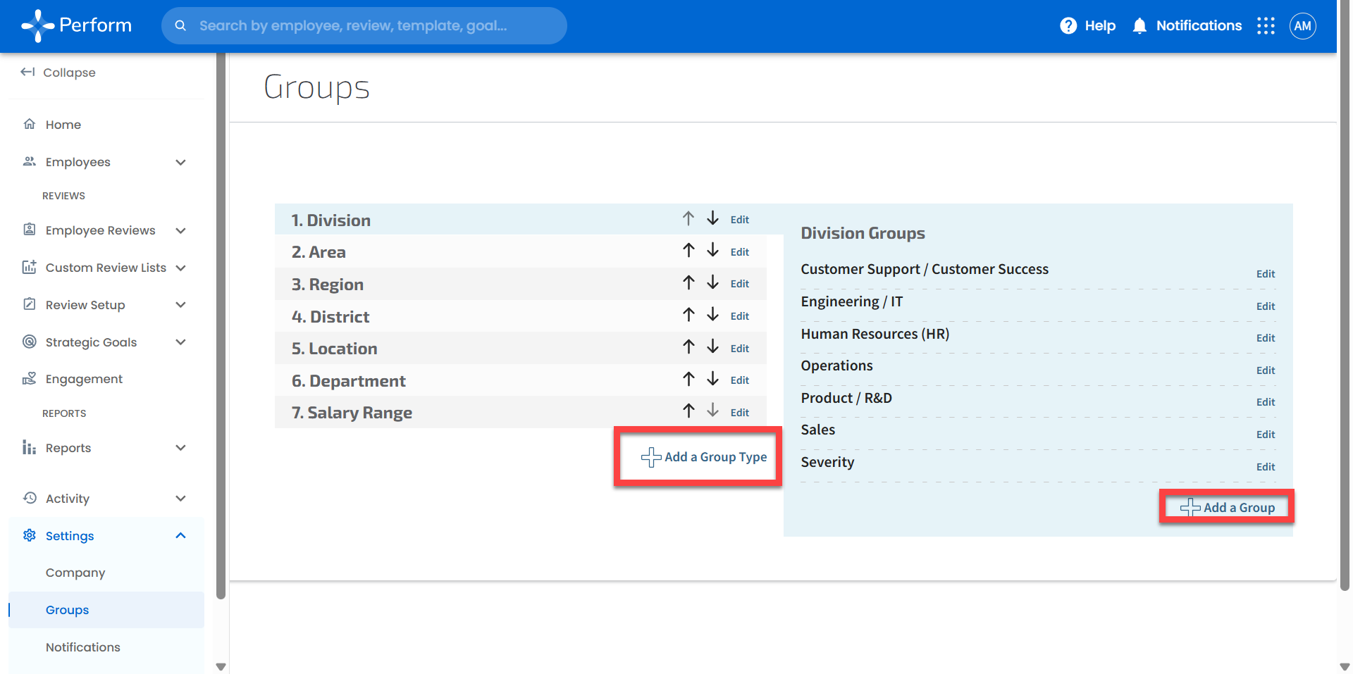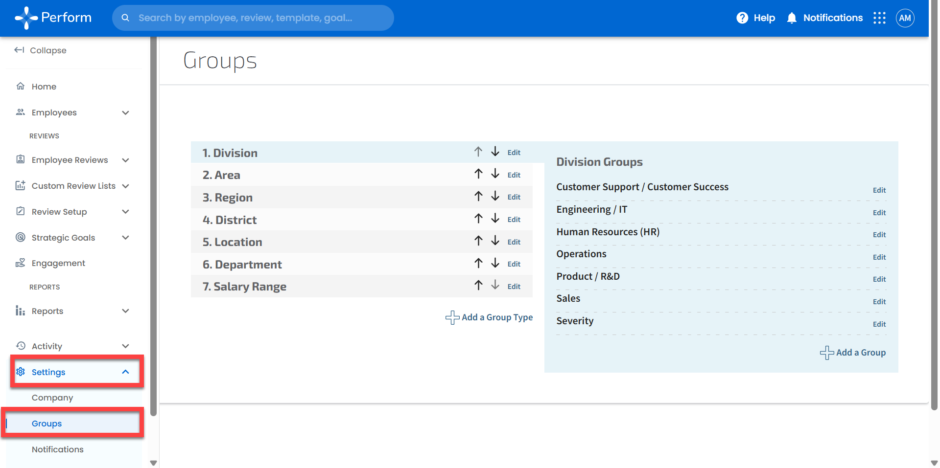 Groups are ways further to specify an employee’s position in an organization. A group starts with a Department, such as Accounting, Sales, or Warehouse. Groups can expand and enable Trakstar Perform Administrators to gather essential data by group. For example, an Administrator may wish to see a report on the performance of employees in the Warehouse at the Springfield location.
