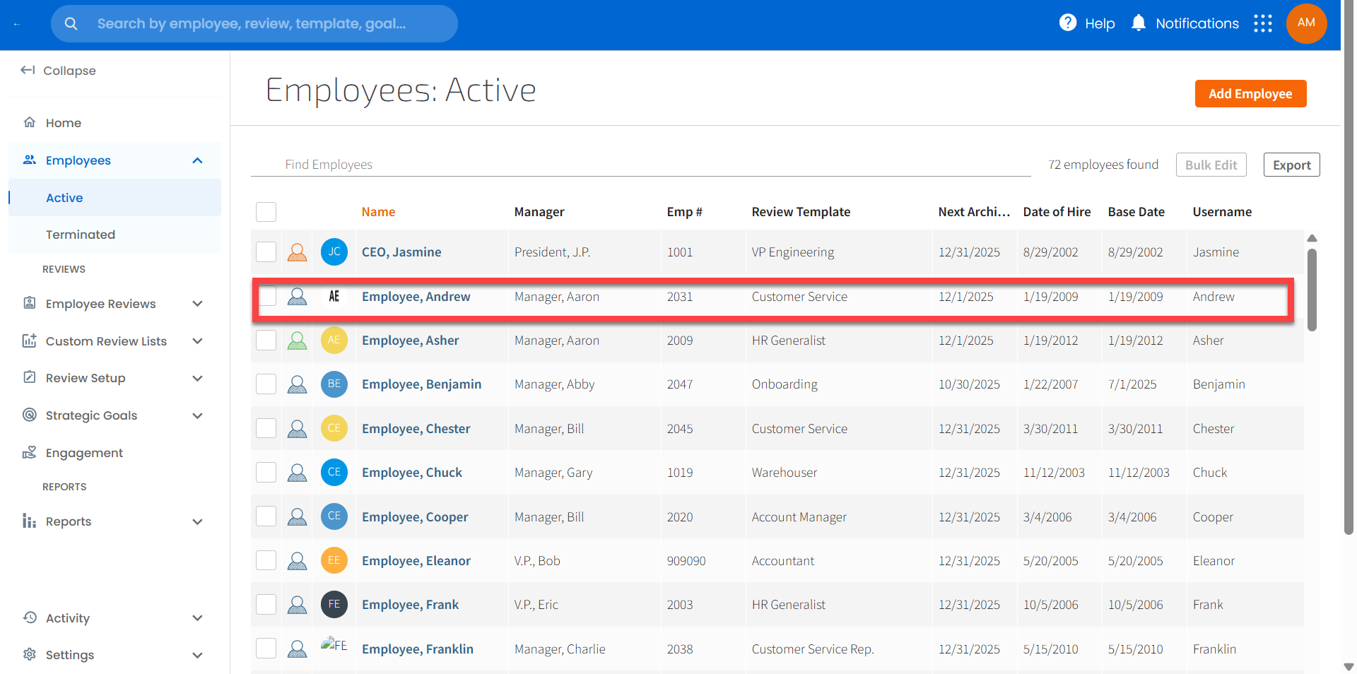 Step 4: To assign a Group to a single Employee, navigate the Employees tab on the Navigation Bar. Click on the desired employee’s name.