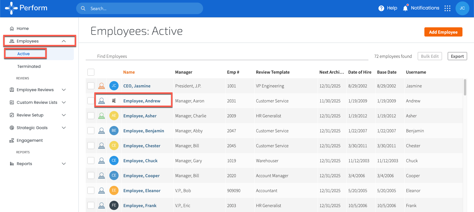 Restricted Admins are a unique role within Perform. They can add new users. In addition, Restricted Admins can work with specific tasks for any users that fall under their purviews - such as changing passwords, updating user email or login, changing managers or positions, and managing reviews (such as scheduling due dates and canceling reviews).