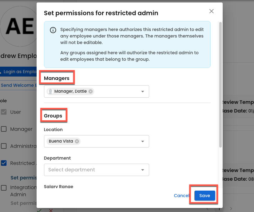 This employee will now have Restricted Administrator abilities with all employees under the Manager or within the Group you have specified.