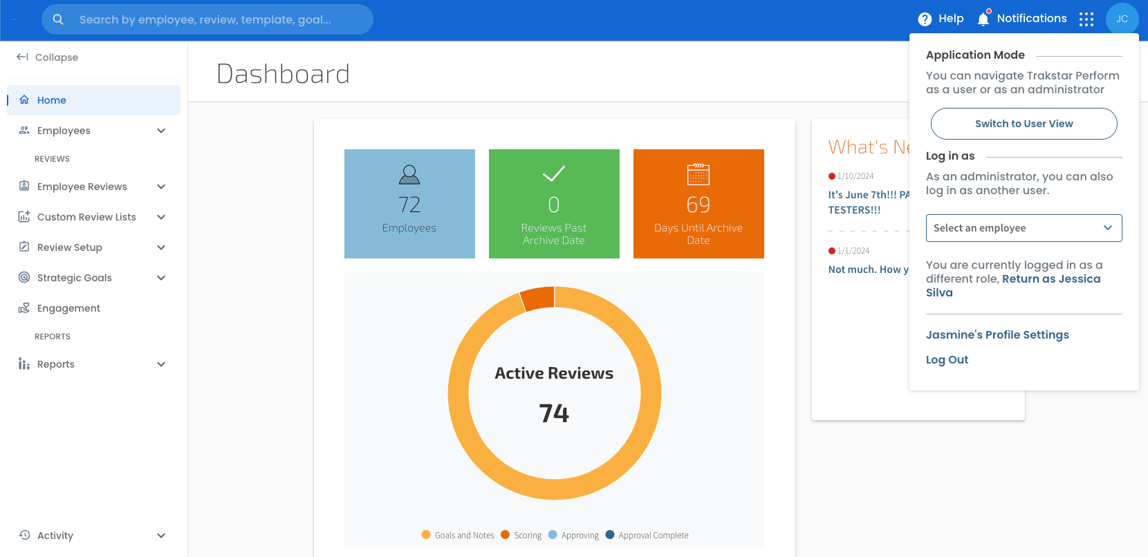 7. What's New Column, with important invites & updates from the Perform includes important Invitations and Updates from Trakstar Perform