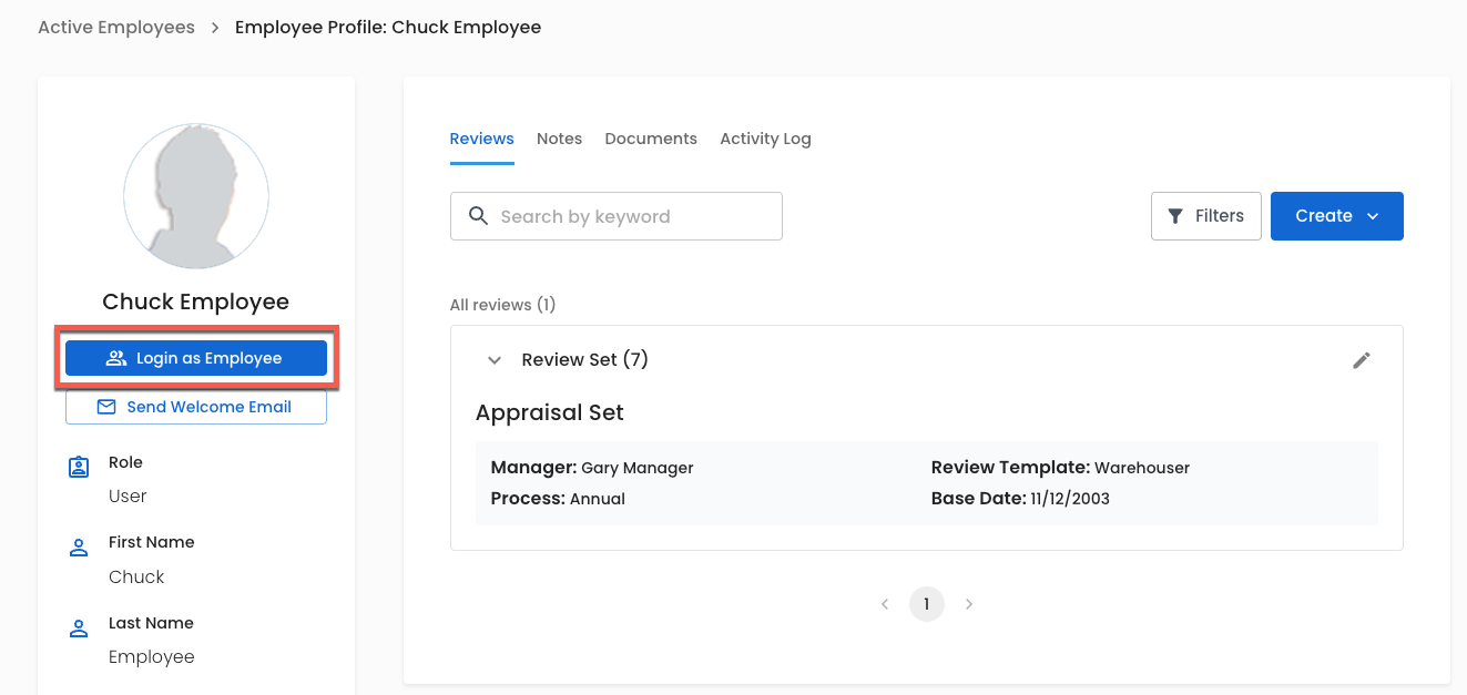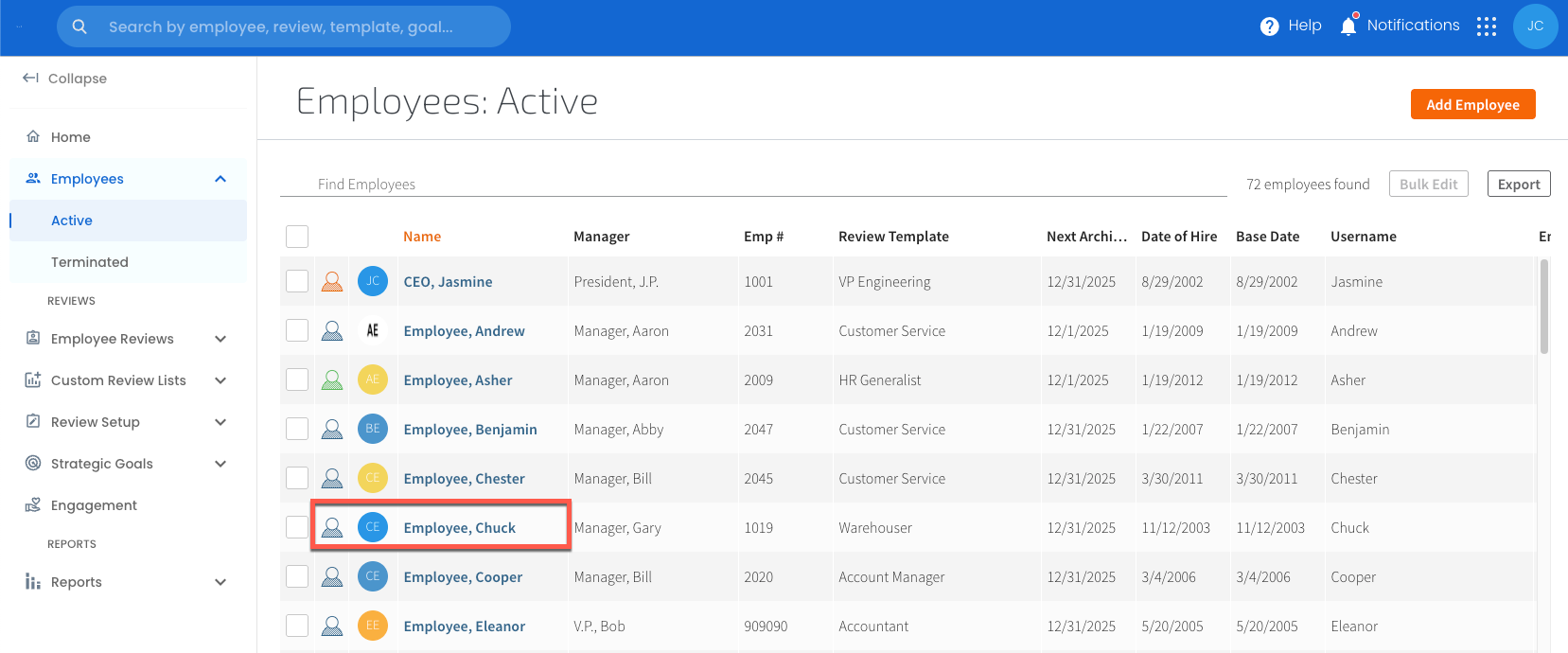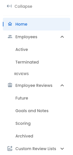 Access these options via the Employee Reviews tab of the navigation bar.