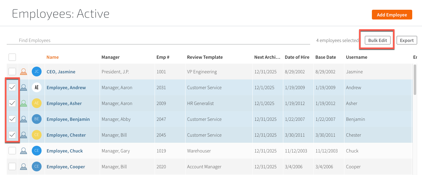 Bulk Editing Employee Information