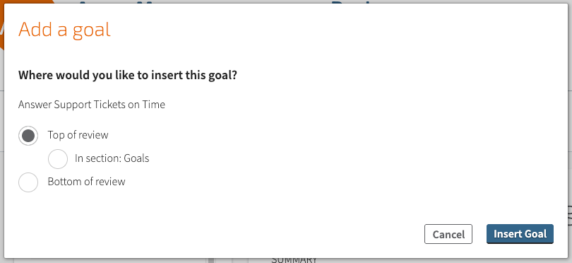 Select Insert Goal once you have selected the section for the goal. Typically, there will only be one option here, but your organization may have multiple goal sections.
