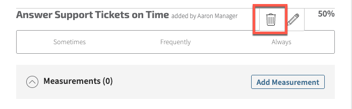 Hover over your goal, and a trash can and a pencil icon will appear. Select the trash can to delete the goal and the pencil to make changes or edits.