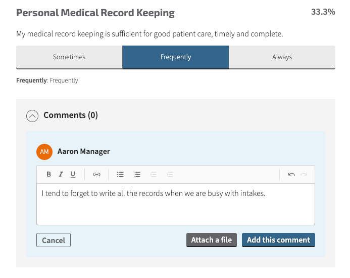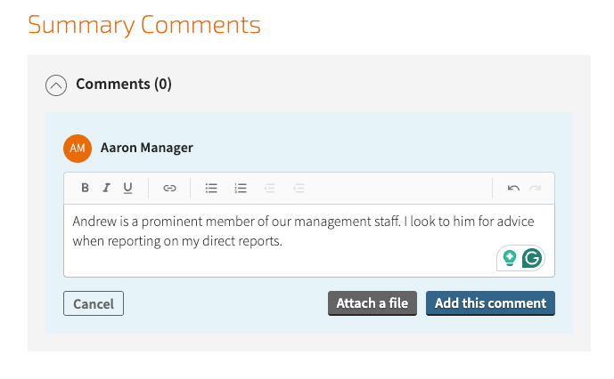 Add any additional comments you'd like to associate with this competency. Comments are optional, and you can add attachments within the comments.