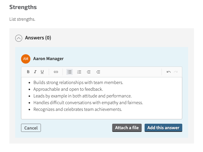 When you've completed your review, it's time to send it to your manager. Your manager cannot see any self-review information until you click Send to Manager. Your review cannot be edited once submitted to your manager.