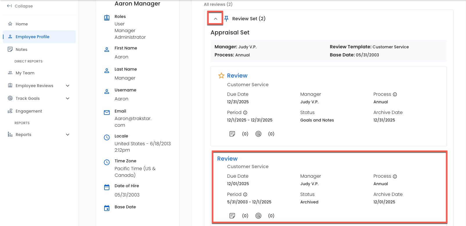The approval step is the final step in the review cycle! Once your review has been archived, you will be able to select Employee Profile on your navigation bar to view all of your archived reviews.