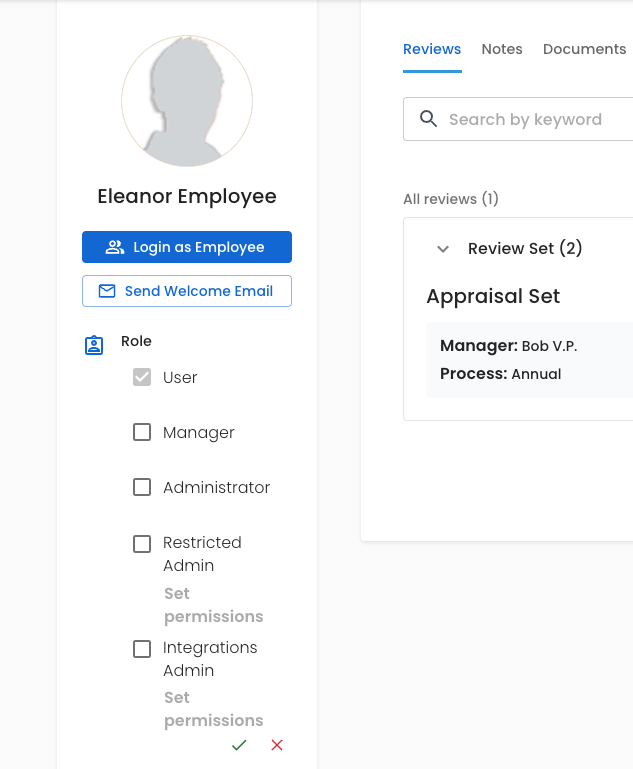 - Allows access to their homepage and review, the My Notes page, and the ability to take notes on other employees