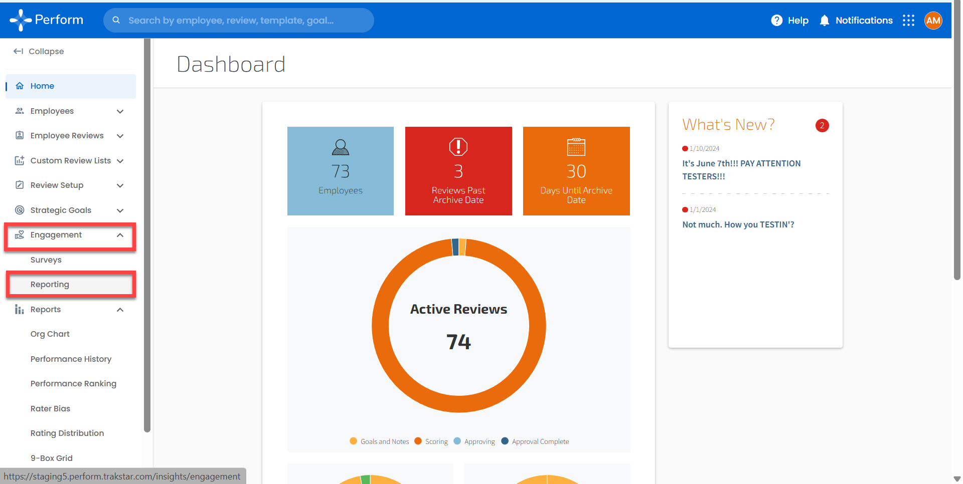 If you are an Administrator and not seeing Engagement as a feature, please reach out to perform@trakstar.com to help.