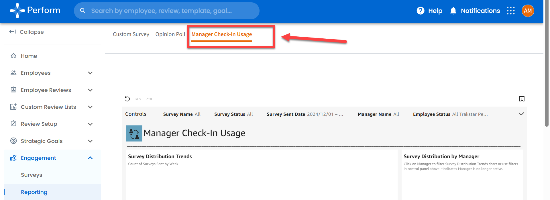 Accessing Engagement Reporting for Manager Check-In Usage: